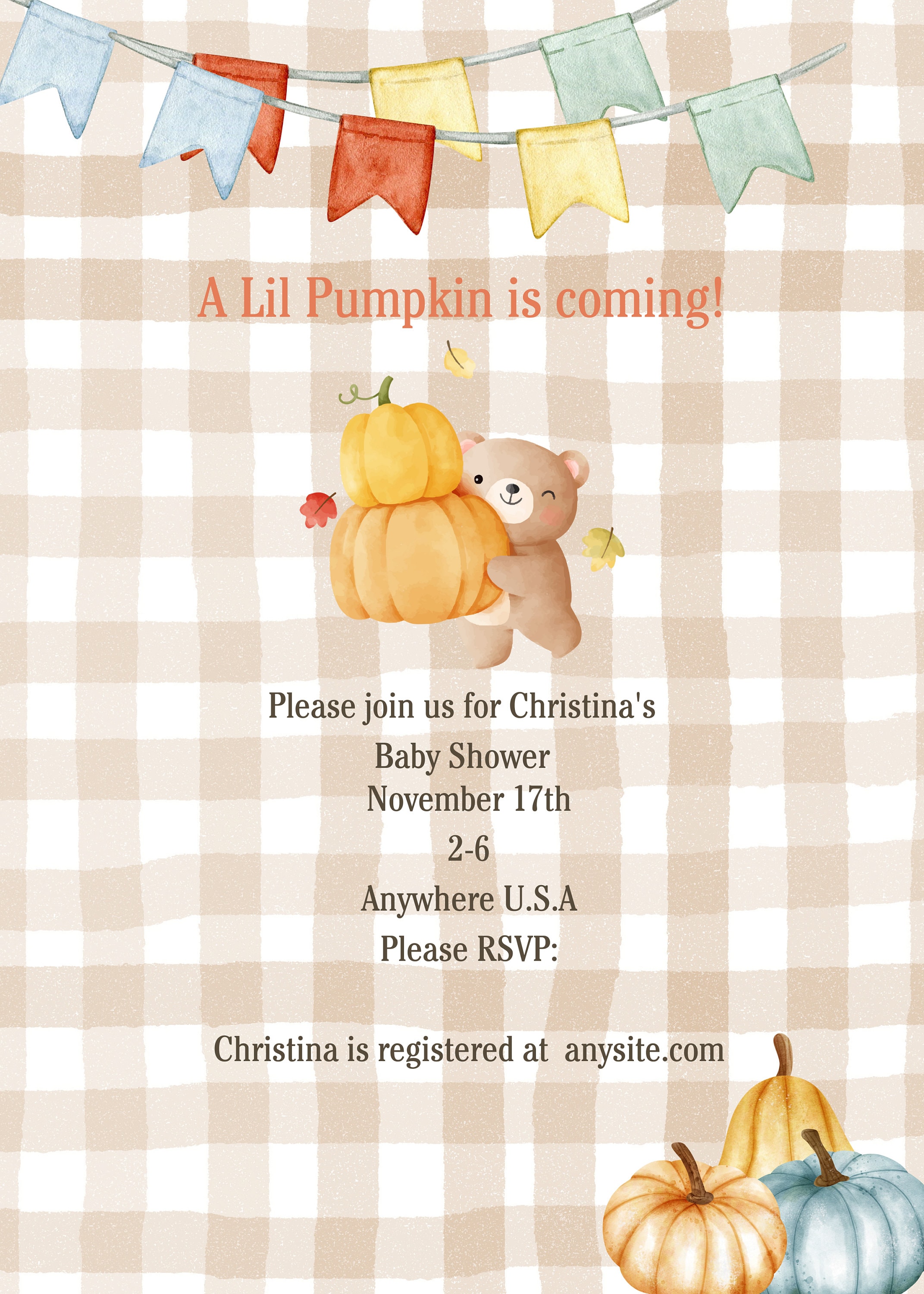 Celebrate the sweetest fall arrival with a customizable baby shower invitation that’s as cozy as autumn itself!