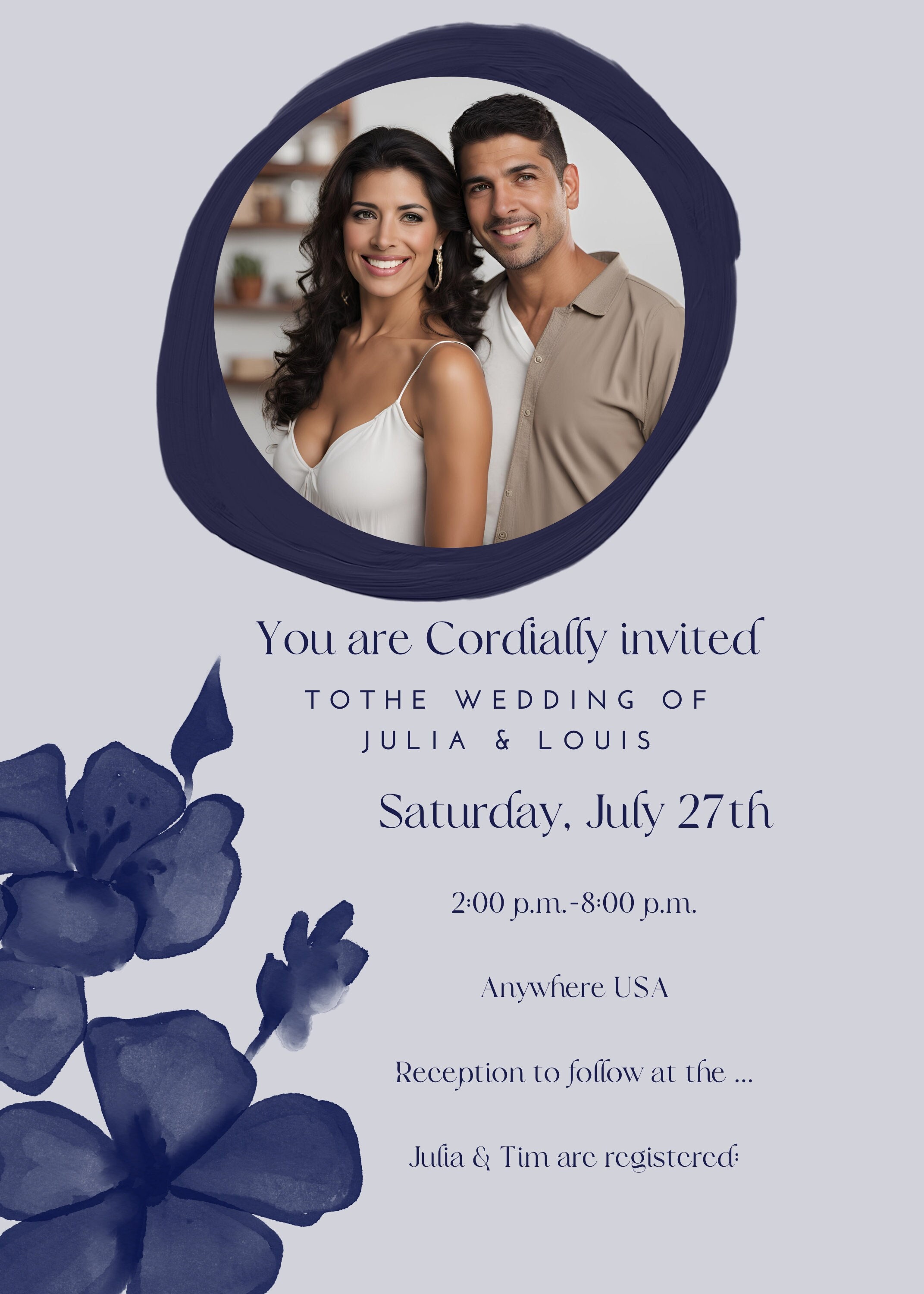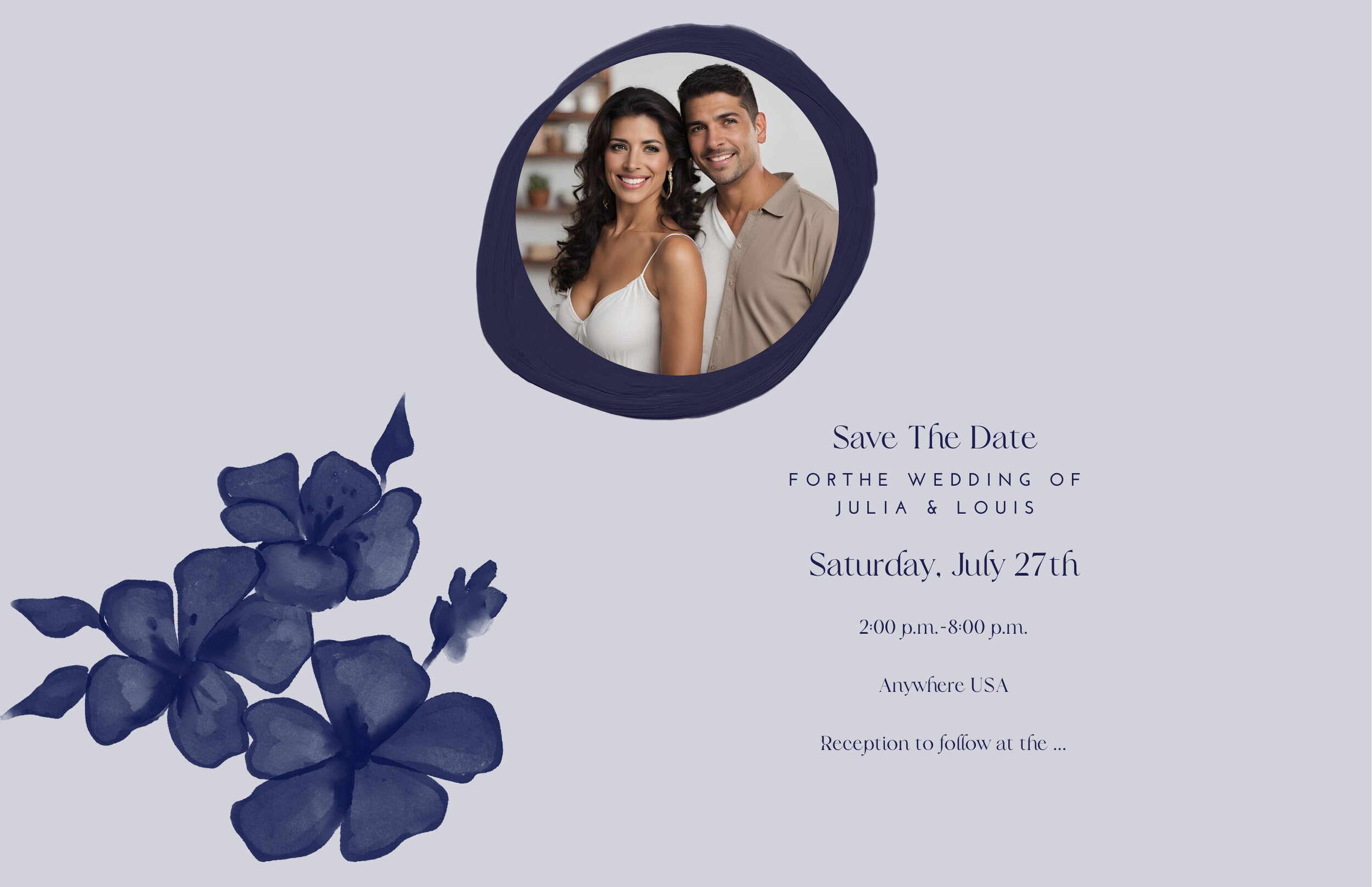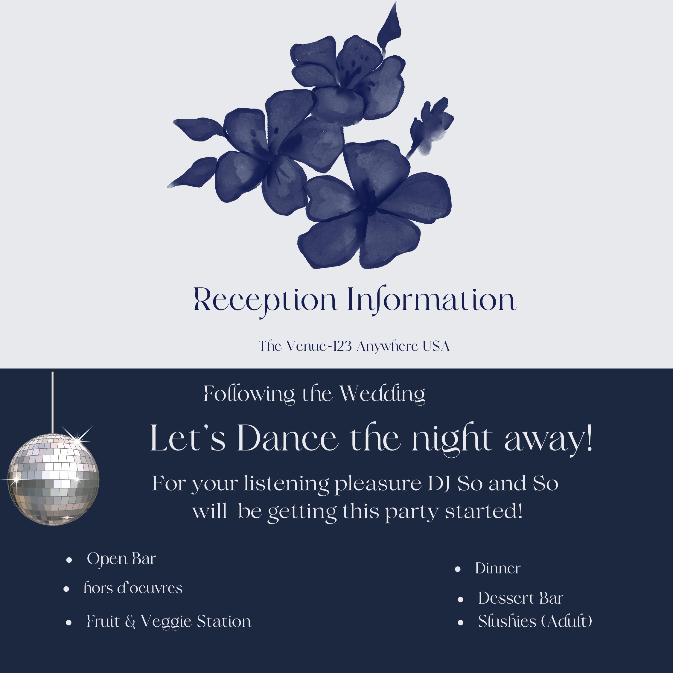 Elegant navy and gray design suitable for any wedding theme