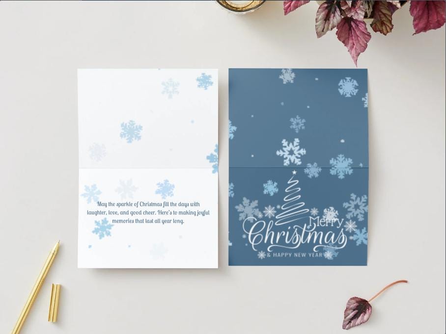 Celebrate the magic of the season with this beautifully designed Merry Christmas & Happy New Year card — available as an instant download! Featuring elegant snowflakes and a modern Christmas tree design, this card is perfect for sharing warm wishes with family, friends, or coworkers.
