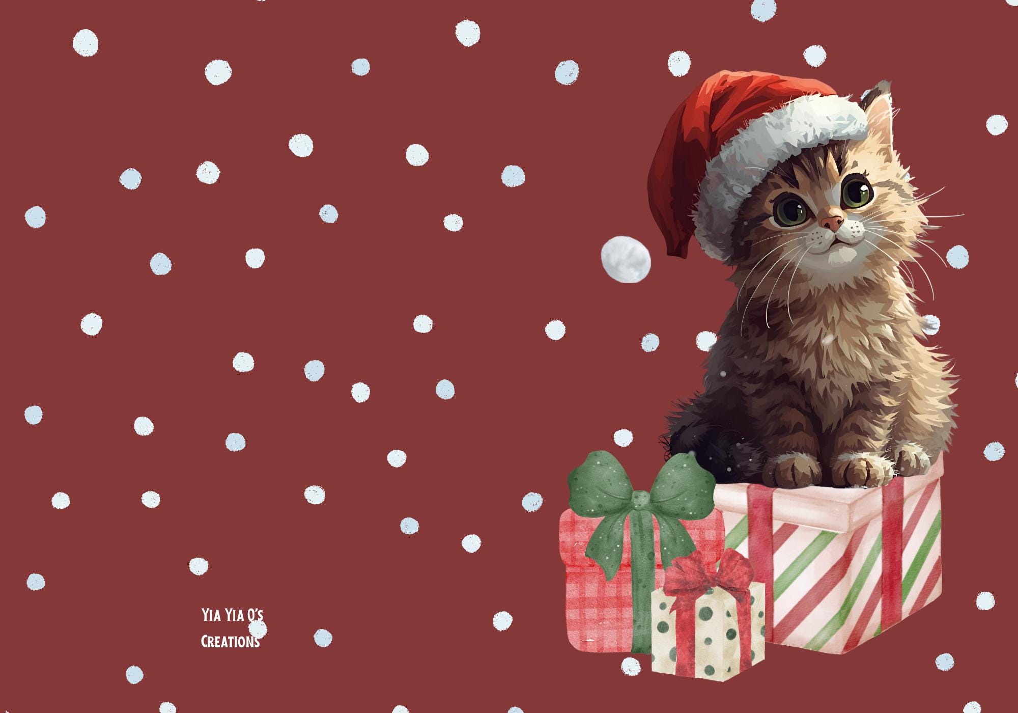 Spread warmth, whiskers, and holiday joy with this charming Christmas card from Yia Yia Q’s Creations! Once purchased you will receive information on how to access your file to print at home or use your favorite service.