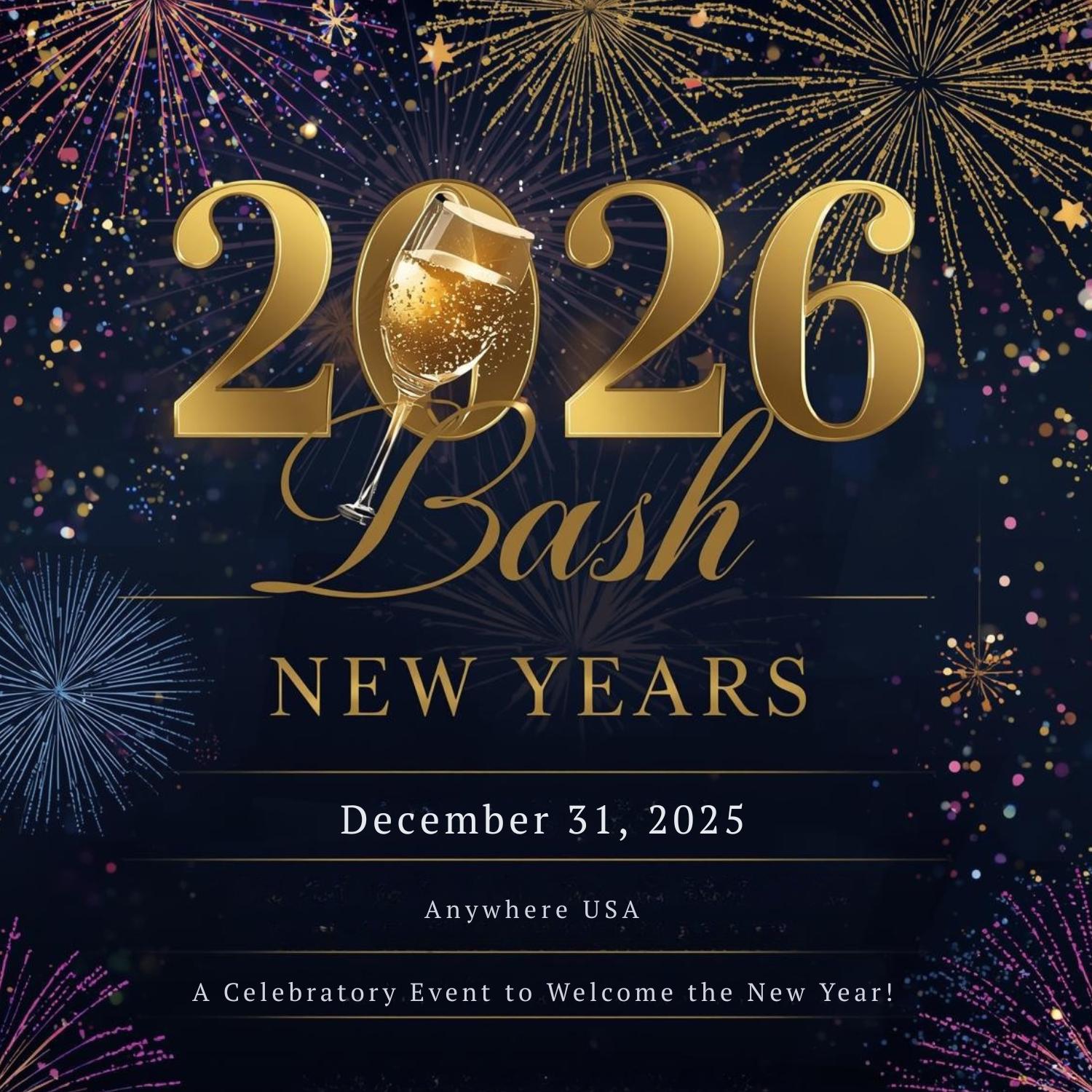 Ring in the New Year with elegance and sparkle using this 2026 New Year’s Bash Invitation!