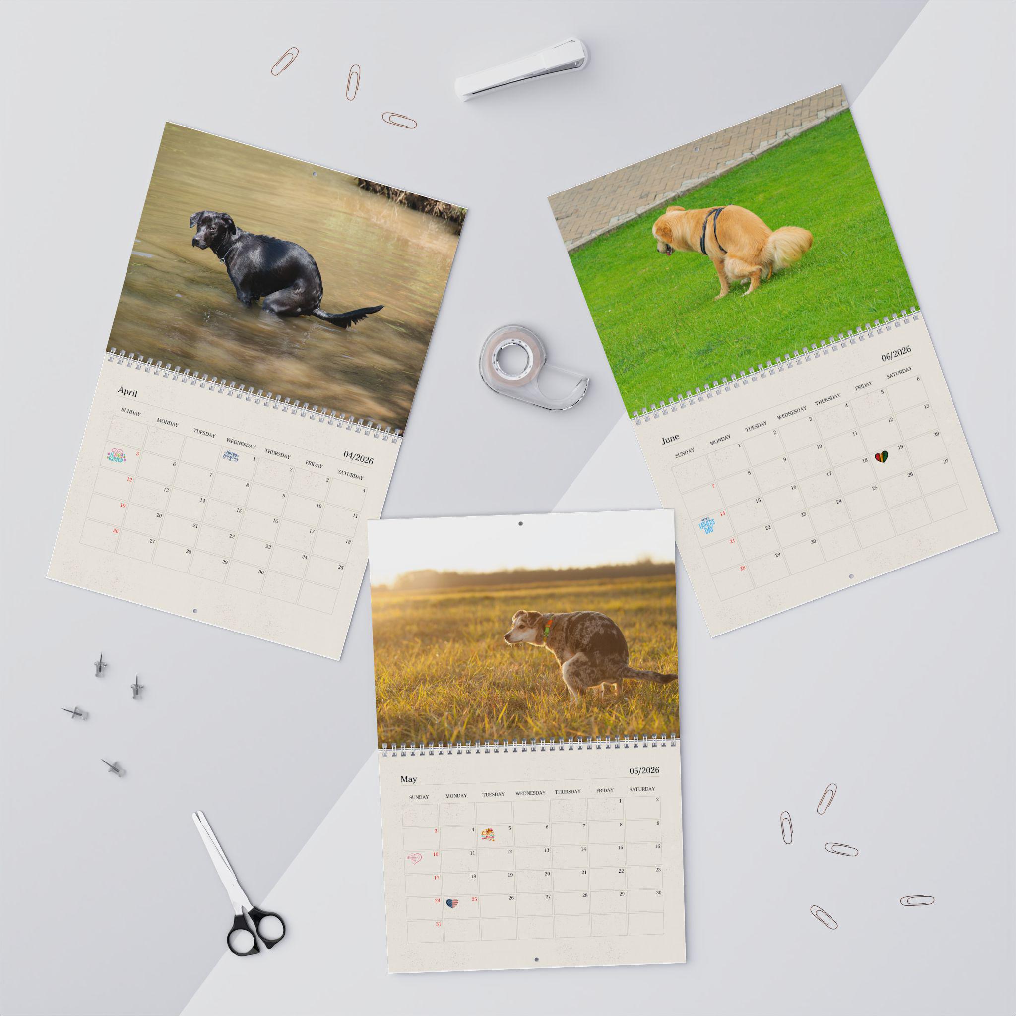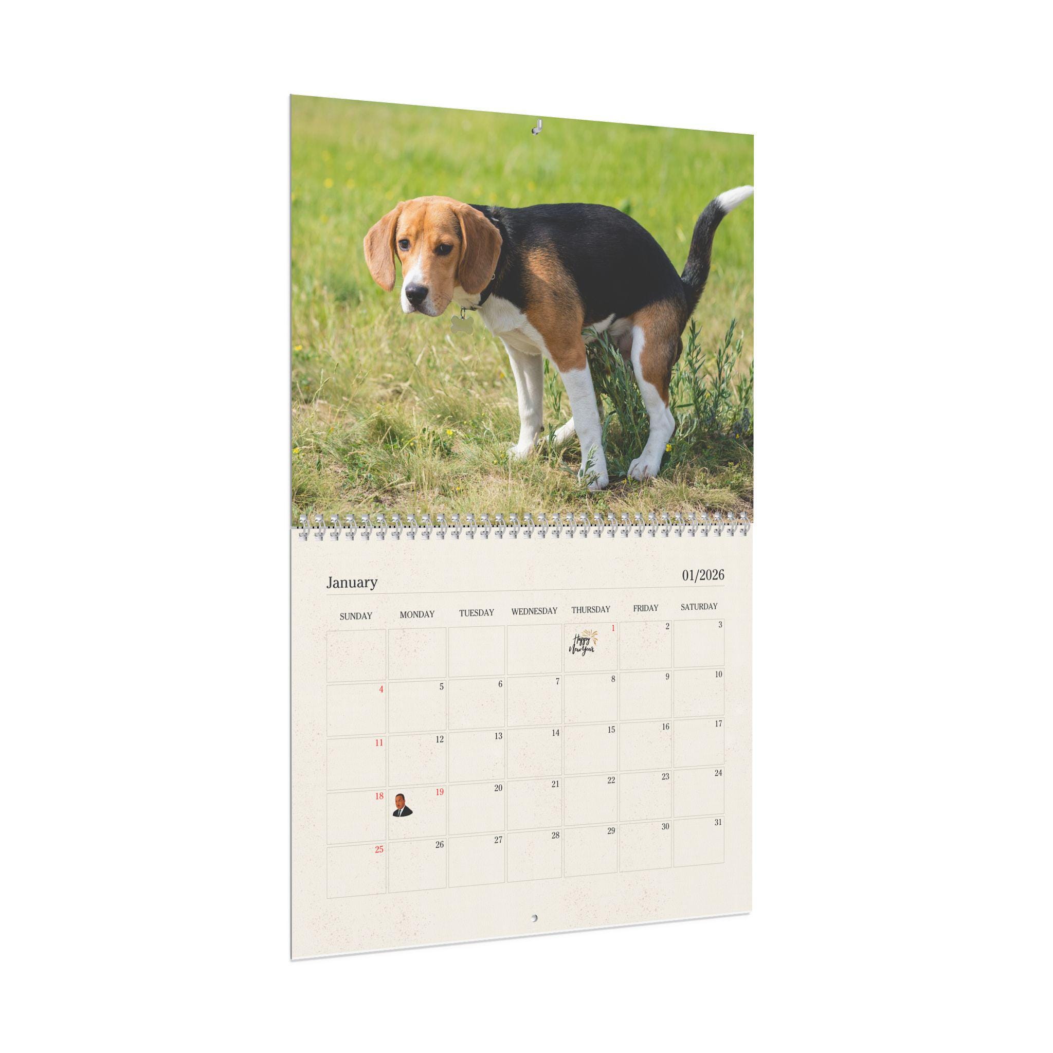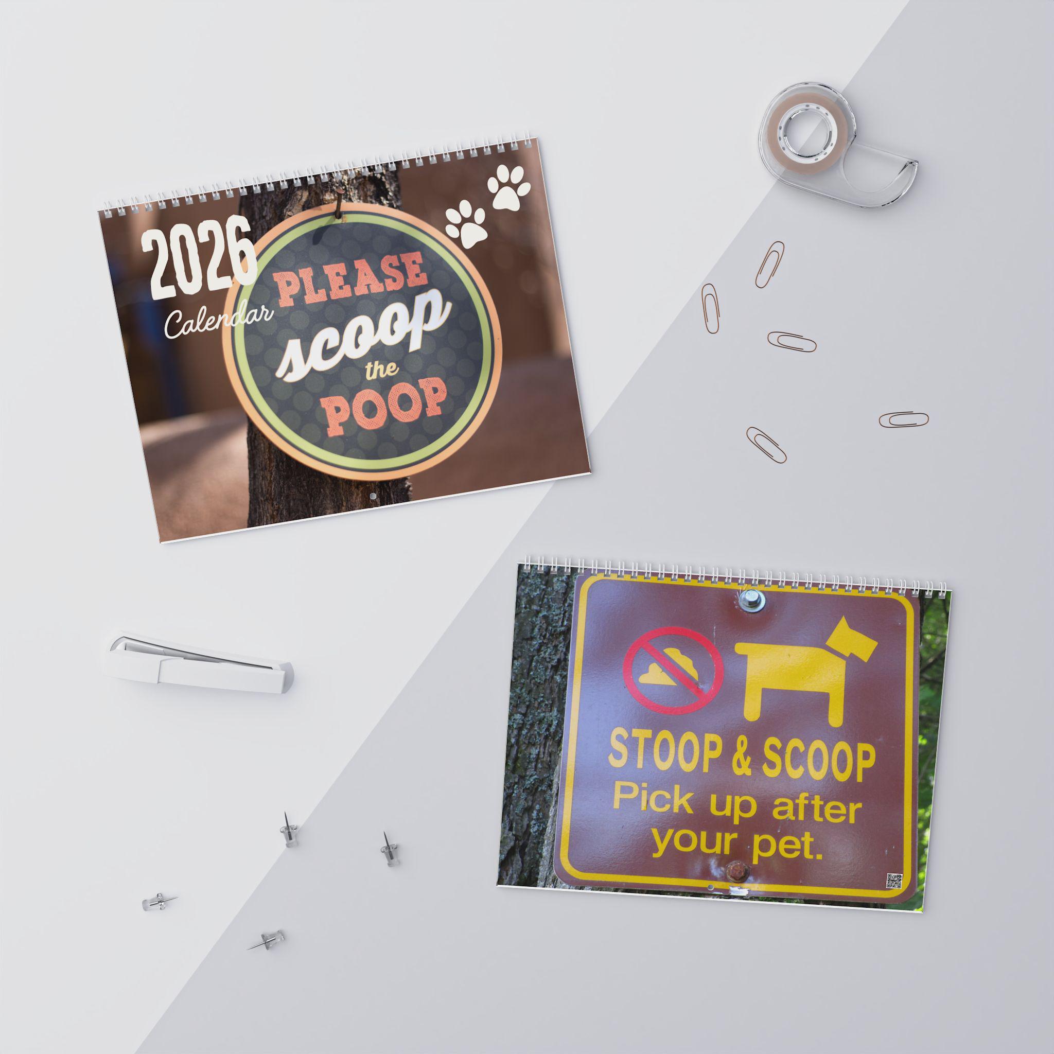 Bring a little everyday laughter to a wall with this Scoop the Poop wall calendar format that lets your photos and layouts take center stage. Thick, matte pages give each month a premium, writable grid beneath a large, vibrant image — perfect for personal photos, pet portraits, or custom artwork. Wire spiral binding and a centered hanging hole make month-to-month flipping easy, while two size options let you pick the scale that suits your space. The matte grid stays friendly to pens and markers so plans, reminders, and doodles stay neat and smudge-free. This calendar is built to showcase your designs while staying highly functional in a kitchen, office, or studio.
