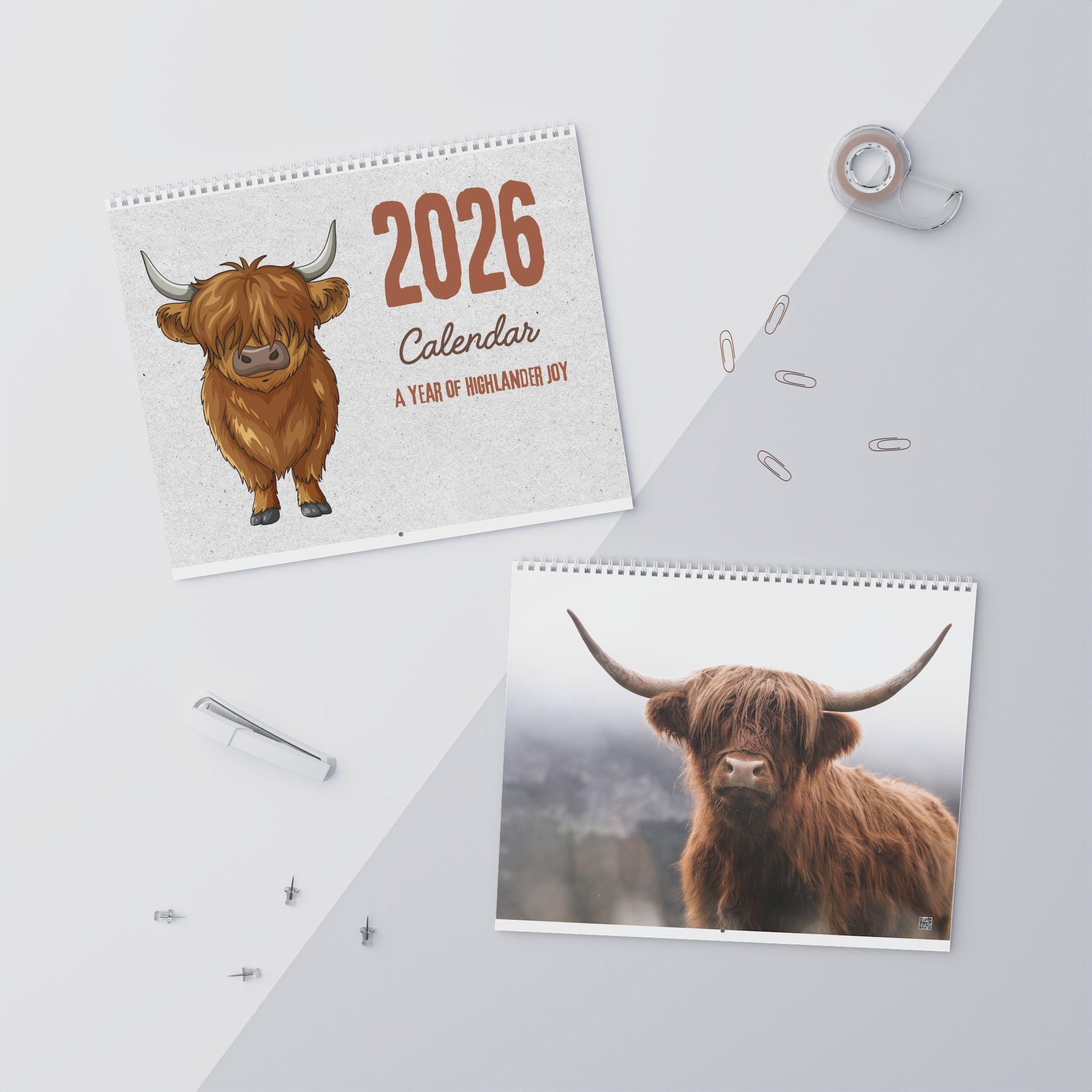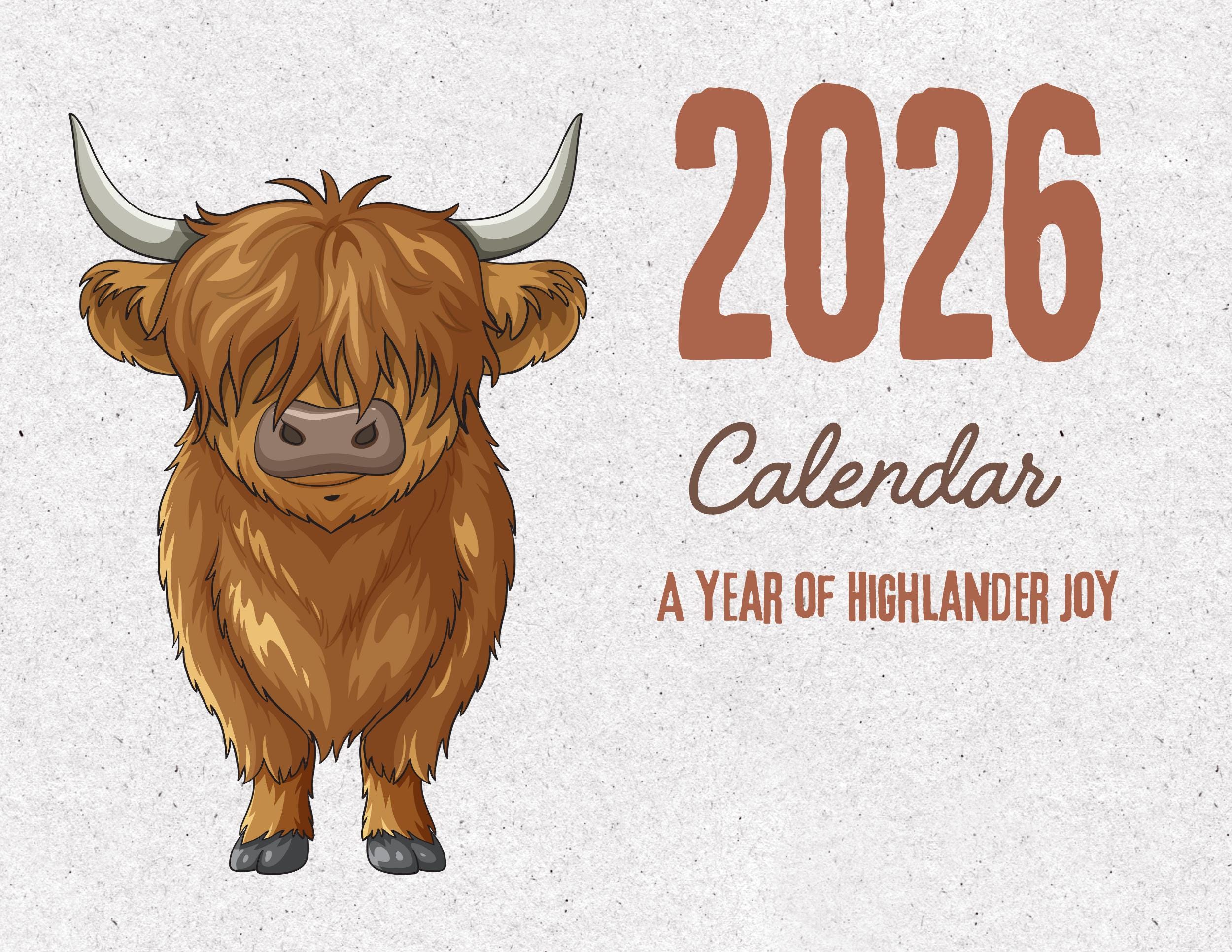 Bring a touch of rustic charm to your home or office with the Highlander Cow 2026 Calendar – A Year of Highlander Joy. This beautifully designed calendar celebrates the iconic Highland cow, featuring a mix of adorable illustrations and serene seasonal scenes that capture the spirit of the countryside all year long.