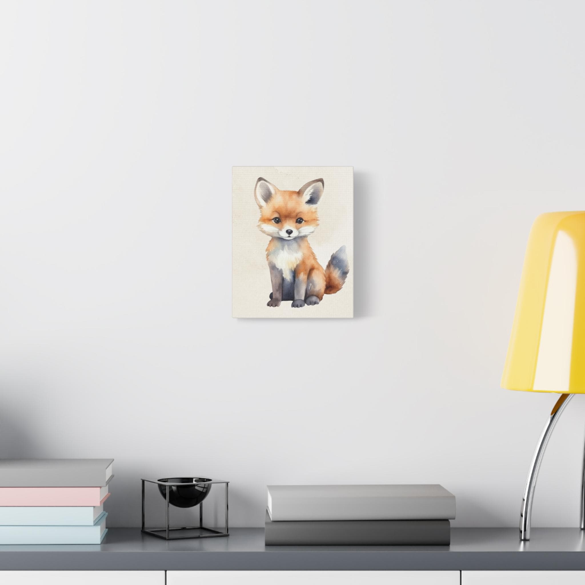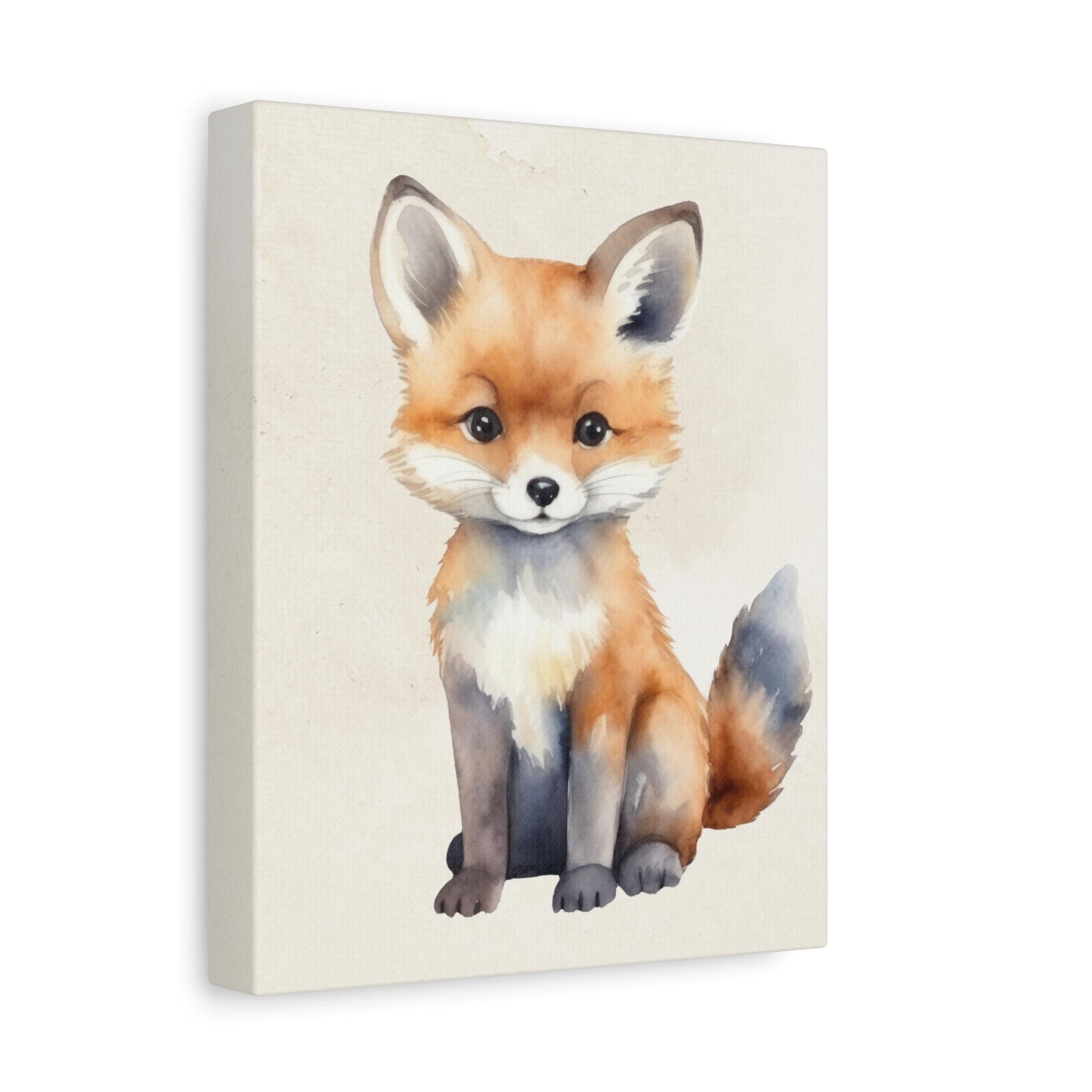 Bring a tender, woodland moment into a nursery or cozy nook with this stretched matte canvas featuring a watercolor fox. The soft, hand-painted tones sit on a warm, neutral background that lets the fox’s curious eyes and fluffy tail become the room’s quiet companion. Lightweight and ready to hang, the wrapped edge gives the image depth while keeping a minimal, gallery-ready look—great for layering on a gallery wall or anchoring a reading corner.