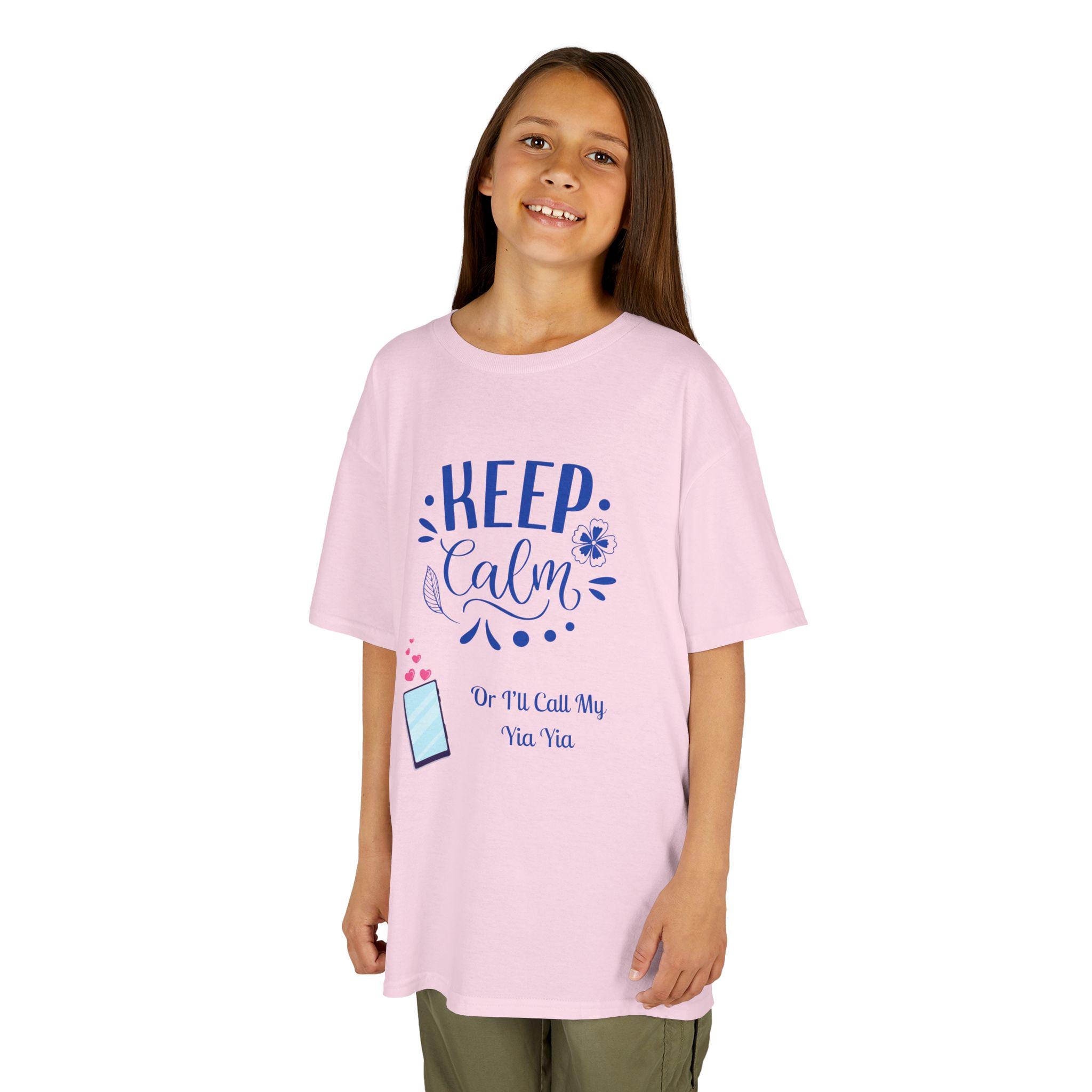 Light, soft, and quietly playful, this kids tee brings a calm, modern energy to little ones who love screens and silly moments. The front print features a gentle reminder to “KEEP calm,” paired with a tiny illustrated phone and a cheeky line beneath for a touch of humor.