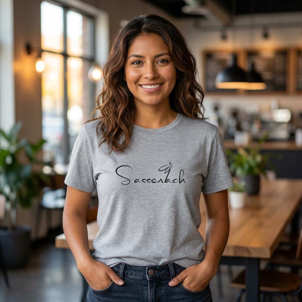 Perfect for lazy mornings, coffee runs, or layered under a jacket for effortless style. The understated script and small icon evoke a sense of personal connection, like a whispered memory from another time. A wearable expression of calm strength and thoughtful design for every devoted Outlander fan.
