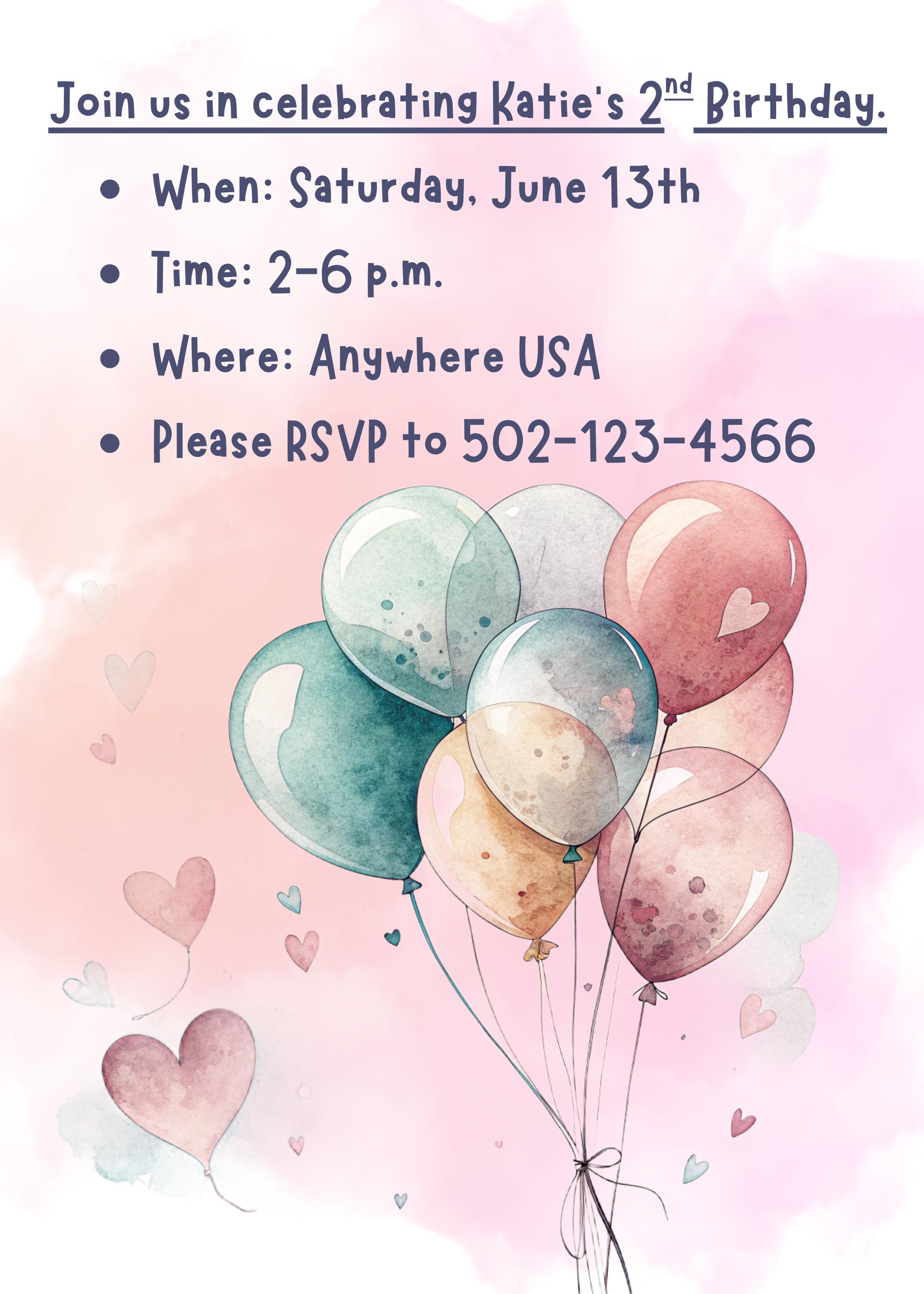 Make your child’s birthday extra special with this delightful, ready-to-edit invitation that captures the joy and whimsy of turning two!
