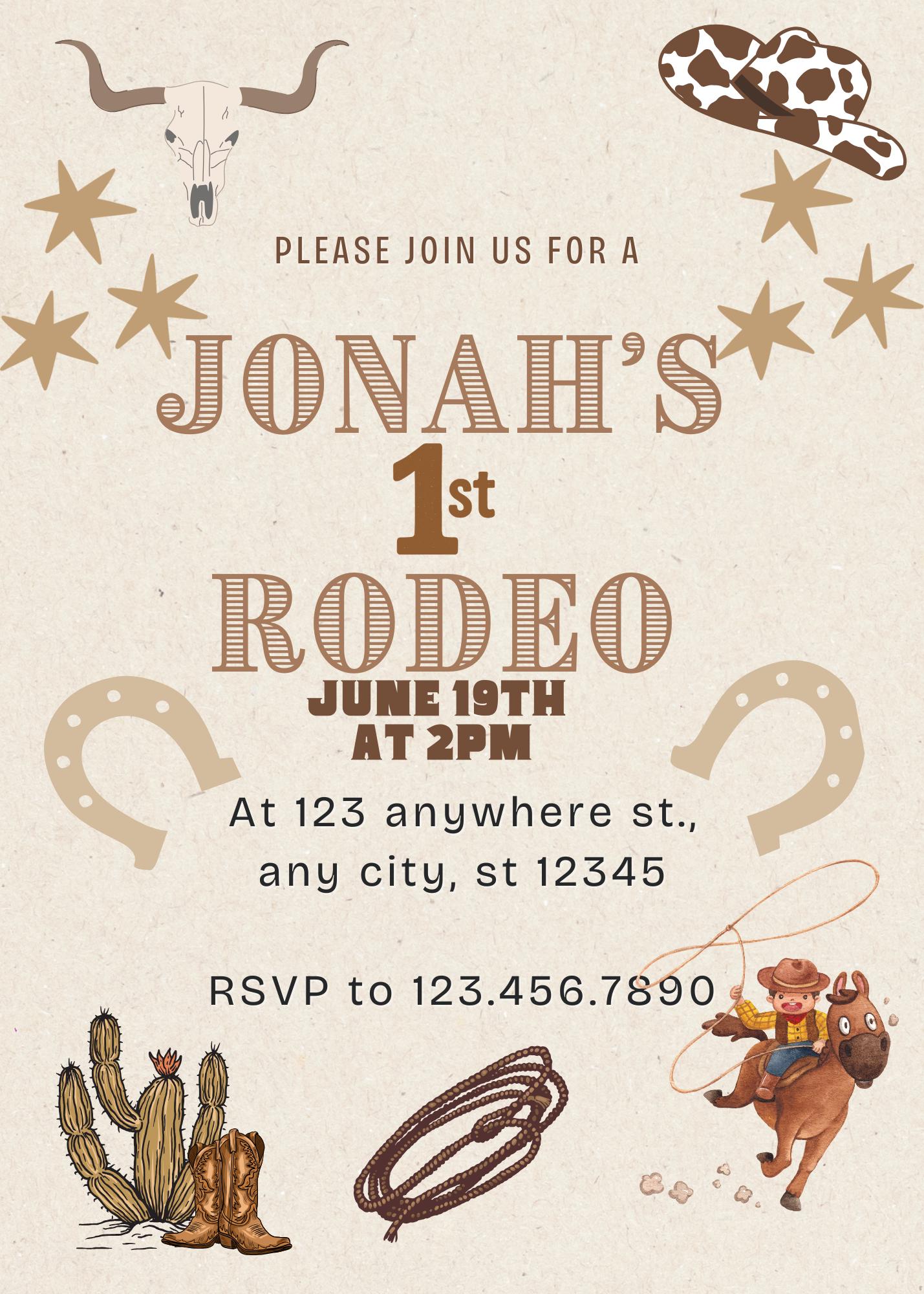 First Rodeo – Editable Canva Invitation Template