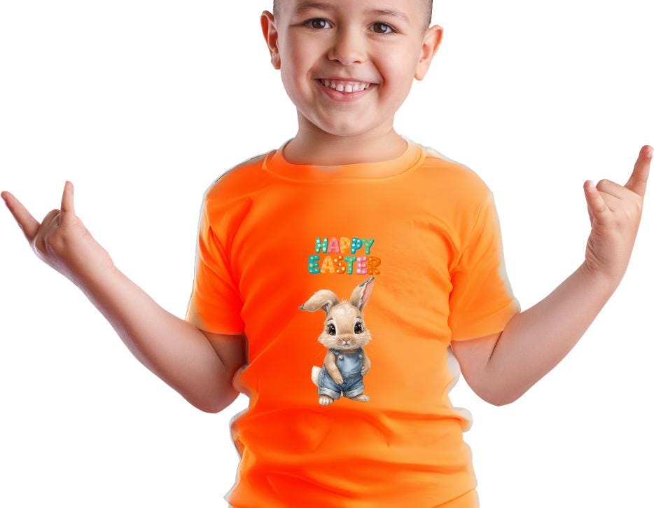 Sunlit backyard mornings, sticky fingers, and that delighted squeal when a tiny treasure is found — this kids tee carries that Easter morning magic. A soft, midweight cotton tee feels gentle on delicate skin while the sweet watercolor-style bunny and cheerful “Happy Easter” letters sit bright at the chest. The shirt’s classic crew neckline and roomy cut let little ones move freely between egg hunts, family photos, and post-brunch backyard games. Breathable cotton keeps them comfortable through the sugar-high and the quiet nap afterward. Crafted with attention to quality and safety, this tee blends playful charm with everyday wearability for children who love color, animals, and seasonal fun.